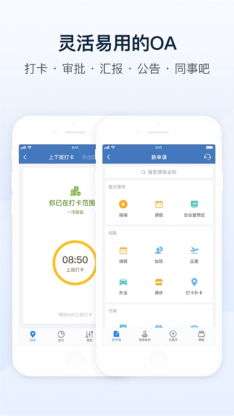 【轻量OA应用】预设官方出品的打卡、审批、日报、公告、同事吧等轻量OA应用