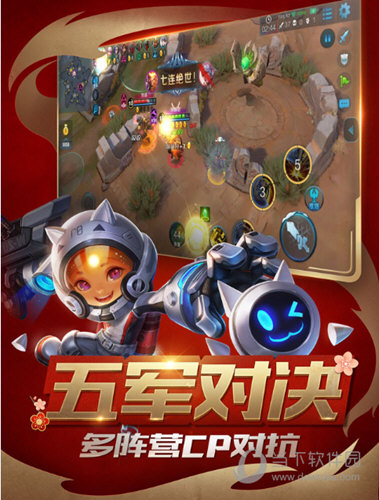 (2)新模式-五军对决:打破红蓝双方的格局,为大家带来五阵营混战新玩法,每个阵营两人。五个阵营在战场中争夺资源获取经济,击杀其他阵营的英雄可以获取星星。关卡倒计时固定为8分钟,第8分钟时,根据阵营星星数量排名,本地图不存在胜利和失败,只会按照第一至第五排序。多阵营对抗新玩法,春节开黑全靠它!呼朋唤友一起来吧!