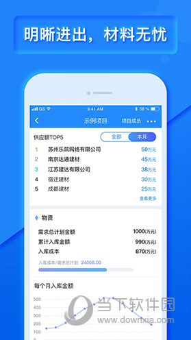 3、管理实时落地:合同发票关联审批与项目,掌控资金去向;采购库存透明规范,使用调拨有组织;施工进度关联项目,进程清晰掌握。