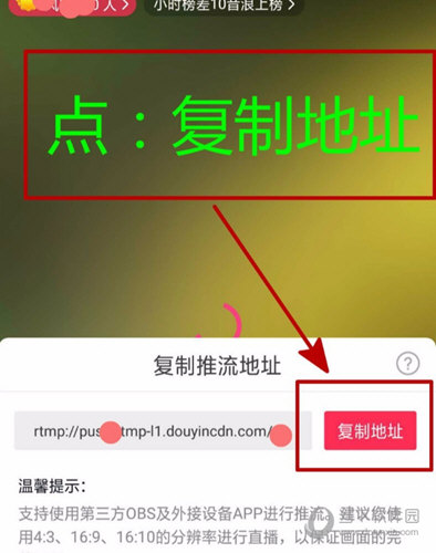 4、点“复制地址” 获取到推流码地址,如下图所示: