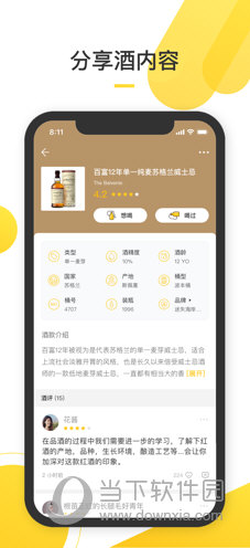 2、专业酒类社区:为美酒爱好者打造的专业酒类社区,你可以在这里了解酒知识 、评价酒品质、分享酒内容、结交新酒友。
