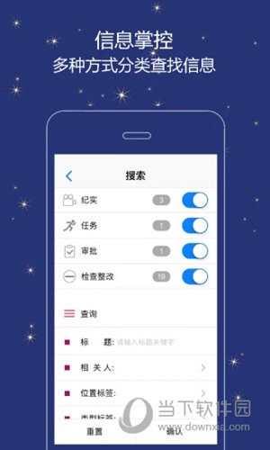 分类管理:纪实、任务、审批、检查-整改、计划等;