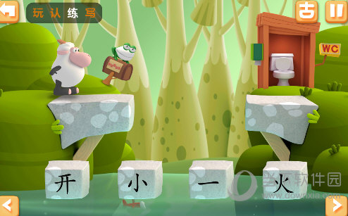 3、练,通过多个小动物的形象的比划以及模拟,让孩子对汉字的理解以及印象更加深刻,此环节也是加入了游戏元素,同时完成任务关卡以后还有有音效哦。