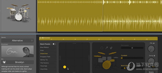 5、节拍随你定:使用 300 多种额外的鼓套件和塑造声音的智能控制功能,创建和精细调整 Drummer 的声音或你的节拍音轨。