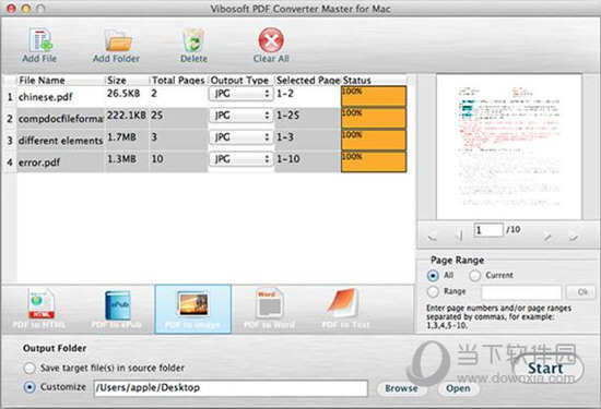 首先,选择输出文件格式。然后按“添加文件”或“添加文件夹”将PDF文件导入此程序。选择计算机上的输出位置并单击“开始”,您将可以实现将PDF文件转换为其他格式。