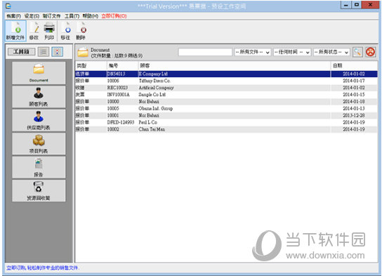EasyBilling 内置了十多款文件,包括:报价单, 估价发票, 发票 收据, 采购单, 送货单, 装箱单, 订购单, 贷方票据, 欠款单。