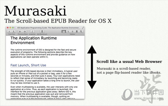 滚动:Murasaki是一个基于卷轴的读者,就像普通的网络浏览器,而不是像iBooks一样基于页面翻转的读者。