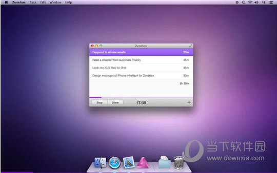 Zonebox是Mac os平台上的一款可以帮助用户提高工作效率的电脑软件,该软件可以帮助我们合理规划时间,进行工作任务安排和提醒,你可以用它来设定某个工作任务的具体时间,到点之后它会准时提醒你现在该做什么,同时它会记住任务列表并显示任务进度。