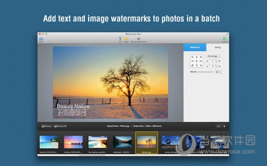 Watermark Plus是Mac os平台上的一款可以帮助用户批量添加水印的电脑软件,该软件添加的水印适合任何尺寸,添加完之后支持图片名称的批量修改,并且你还可以将其保存为自己想要的相片格式。