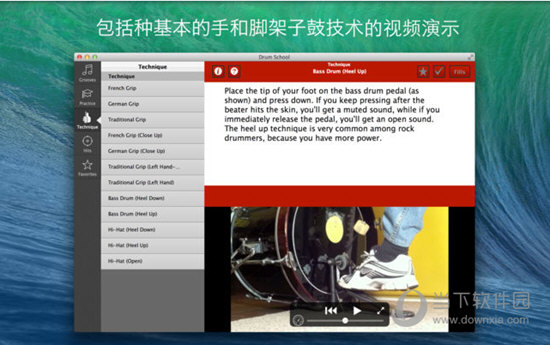 包括12种基本的手和脚架子鼓技术的视频演示。