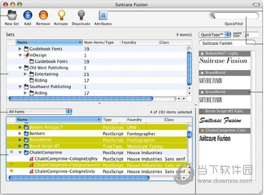 Extensis Suitcase Fusion将Suitcase和Font Reserve整合到了一起。结合相关插件,支持InDesign Illustrator 和 QuarkXPress。