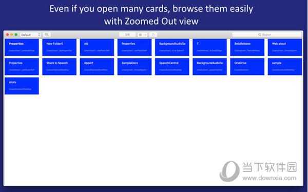 File Cards Mac版采用卡片的方式来管理你电脑中的文件,用缩小视图、工作区和选项卡来浏览大量文件和文件夹,就像浏览应用程序一样简单,让的文件变得更加好找,分类也更加的清晰。