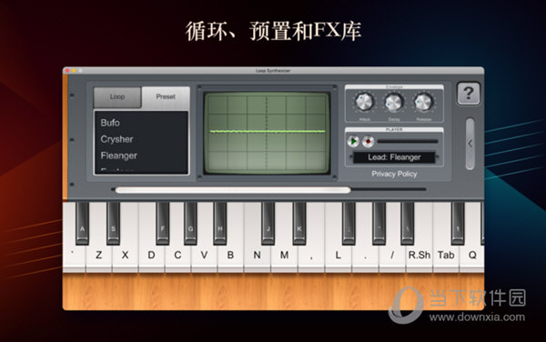 衣袋电子键盘Mac版是苹果电脑上的虚拟电子合成器,拥有循环、预置和FX库,您所需要的就是通过键盘合成一首美妙的电子音乐。同时它支持接Midi设备。