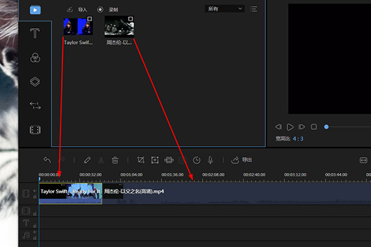1、相信大家在很多小视频的APP上都看到过,有很多视频是由多个小视频整合合并到一起的,其实这就是剪辑合并的魅力,如果你想要将不同的进行合并,则可以打开视频编辑王软件,导入想要合并的视频,接着将视频选择拖动到下方的时间线中,如下图所示:
