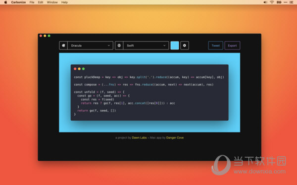 软件使用操作也非常的简单,用户可以轻松拖动源代码到Dock图标,通过服务菜单发送Carbonize代码。将生成的图像拖放到Finder、app或社交媒体中。