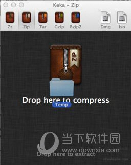 Keka 所支持的文件压缩格式:7z, Zip, Tar, Gzip, Bzip2, DMG, ISO。