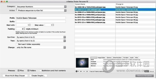 A Better Finder Rename提供了一套完整的重命名选项,分为15个类别,涵盖的所有文字,字符,位置,转换和截断功能。允许多个命名步骤结合在一个单一的操作来处理复杂的重命名工作。与其他工具不同的是,一个更好的搜索重新命名允许任何数量的重命名操作相结合,重新排序,复制和删除。