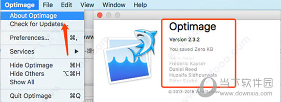 2、等待软件安装完成,可在应用程序中打开软件,安装即是破解,你可以点击菜单栏上方的软件标识,选择“about optimage ”查看软件的相关版本信息。