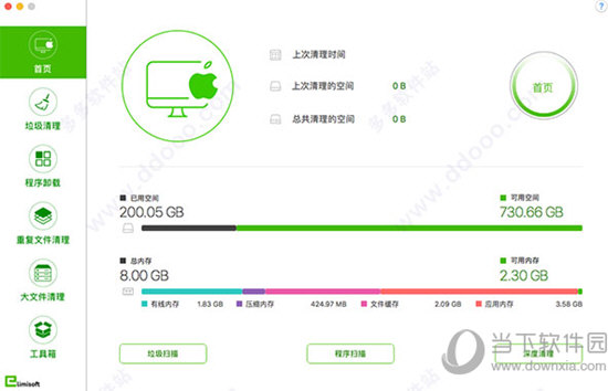 1、智能清洁:清理应用程序垃圾文件,应用程序缓存,日志,系统缓存,系统日志,邮件附件,iTunes垃圾文件,本地化语言,浏览器cookie和历史记录等。