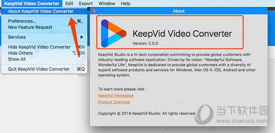 2、等待软件安装完成,可在应用程序中打开软件,安装即是破解,你可以点击菜单栏上方的软件标识,选择“about keepvid video converter”查看软件的相关版本信息。
