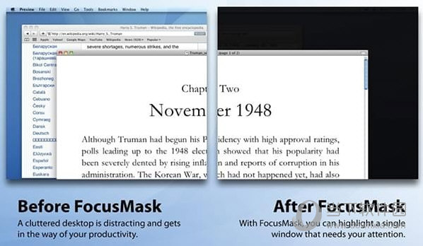 如果你还在为自己不能集中注意力而烦恼,那快来试试FocusMask Mac版这款可以帮助我们提高注意力的工具吧。FocusMask可以高亮窗口,或者高亮屏幕中自选内容,而其他地方会变暗,使自己更专注于自己的工作。