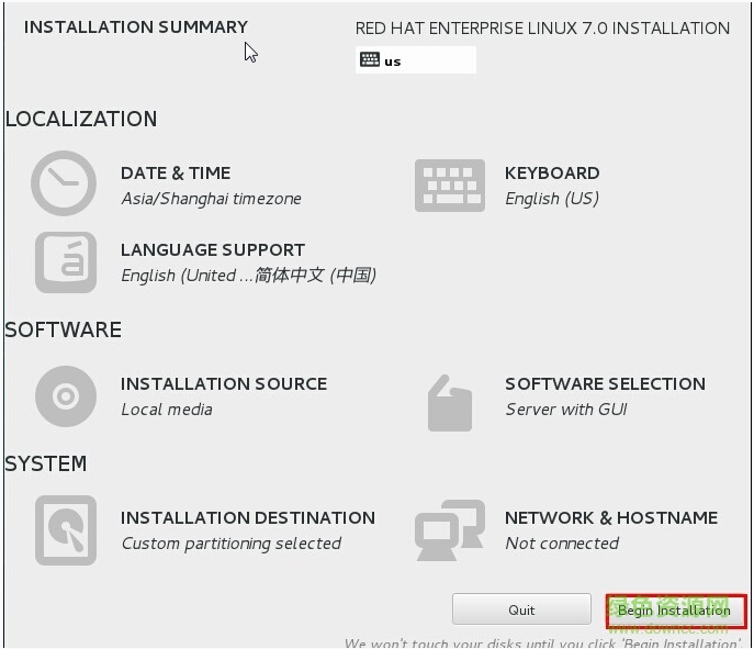 RedHat Enterprise Linux 7.0 支持更多的CPU,内核和内存。只有64位硬件支持RedHat Enterprise Linux 7.0安装。