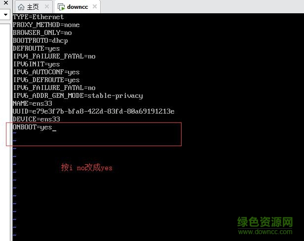 2.输入vi /etc/sysconfig/network-scripts/ifcfg-ens33找到onboot改成yes,按下字母按键‘i’就能修改文件了,修改完成之后输入:wq然后按下enter键编辑成功