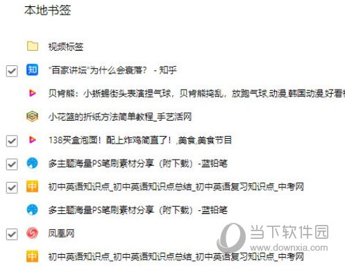 进入‘整理书签’页面后,将鼠标指针悬停在任一个书签时,该书签前方就会显现出一个复选框,单击鼠标复选框就会提‘勾’,代表选中该书签。