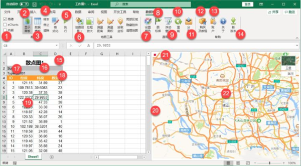 根据Excel表中提供的数据,在地图上建立图层,绘制图形,将数据可视化