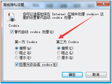 (2)选择“隐私”选项卡,点击高级按钮,注意按下图设置。