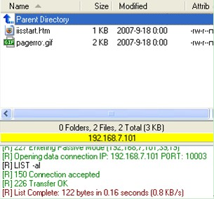 登录成功后,可以看到刚才制定的FTP目录下的文件,并具有相应的上传、下载权限。