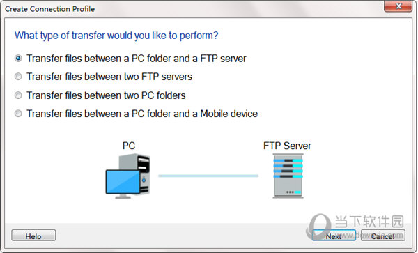 传输文件和文件夹之间:PC到FTP或PC到PC