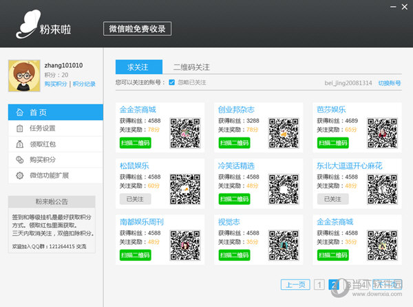 粉来啦是一款专为微信公众号设计的加粉软件。它采用了独特的机制,让用户可以通过关注指定的公众号来赚取积分。这些积分不仅能兑换成现金,还可以用于发布关注任务,以此吸引更多的用户关注自己的公众号。相比于传统的微信加粉方法,使用粉来啦能更高效地实现粉丝增长目标,同时提升公众号的整体形象与影响力。 其主要特点包括: