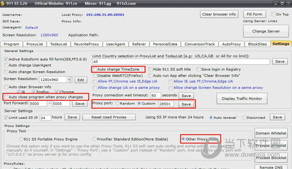 在常规设置(General Settings)部分的代理端口(Proxy port)部分,请您选择“自定义(Custom)”并设置端口号,并务必点击“Save”按键保存设置在代理工具(Proxy tool)部分,选择“其他代理工具(Other Proxy Tools)”