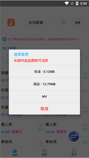 3、支持无损、标准以及高品和MV等,下载速度快;