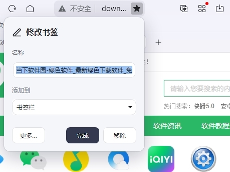 在弹出来的收藏页面,你可以修改书签的名称,以及书签保存位置,点击更多可以添加书签文件夹。