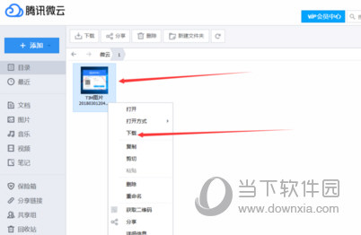 1、在腾讯微云右键需要下载的文件,这时候就会出现一个下载的选项了。