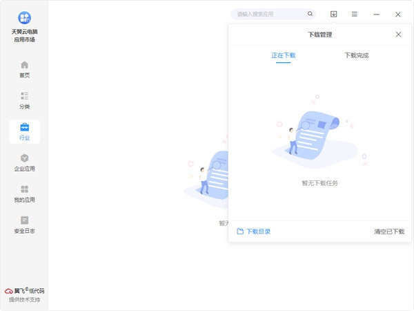 2、在天翼云电脑应用市场客户端中,可搜索、下载、升级日常所需应用与企业创建的办公应用