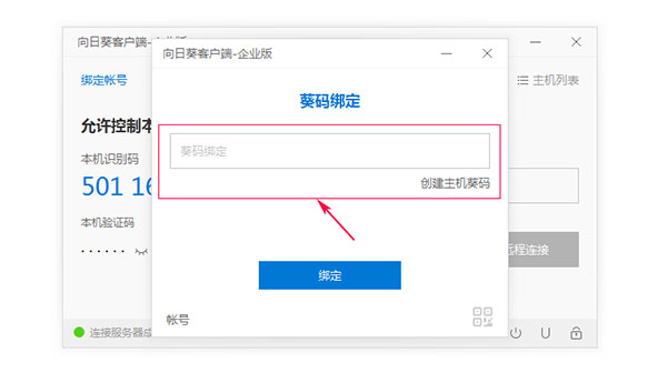 使用葵码绑定,需管理员在向日葵Web控制台先创建主机,且一个葵码对应一台主机。