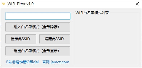 WIFI Filter是一款由晨钟网络科技开发的一个电脑WiFi过滤工具,你是否遇到一个问题就是自己电脑在选择WiFi的时候,WiFi列表中总有那么几个乱七八糟WiFi信号,让你不能第一时间找到你所要连接的WiFi,那么你就可以利用这个工具来快速屏蔽掉这些无用的WiFi,让WiFi列表只显示指定的信号,轻松连接到想要的WiFi。