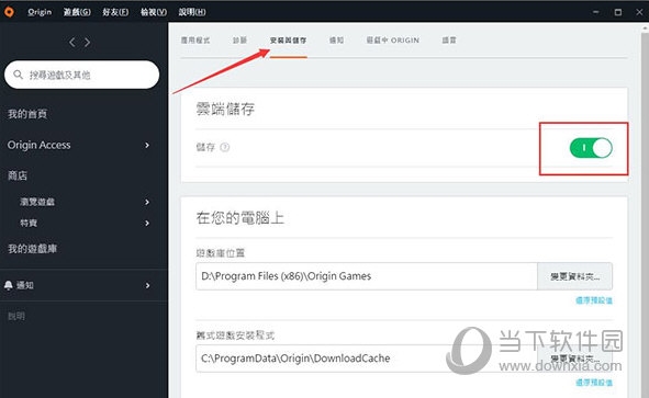 2、之后将设置功能切换至“安装与储存”标签页,将“云端储存”后方的状态按钮切换至关闭状态即可。