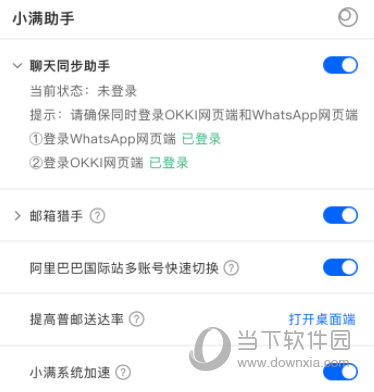 小满助手插件是款可以安装在PC浏览器上的辅助插件工具。它可以帮助用户们轻松处理各类办公聊天和其他工作事务,支持帐号关联、邮件处理等功能,满足大家的日常工作需求,操作简单,非常好用,不容错过。