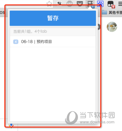 暂存标签插件安装完成以后,无需刷新网页即可直接使用。如需对标签页进行暂存,只需在 Chrome 浏览器任意网页中点击浏览器上方工具栏中的插件图标,网页右上角将自动弹出一个小窗口,用户只需点击该窗口中蓝色的【暂存】按钮,即可将浏览器中已打开的所有标签都进行保存。