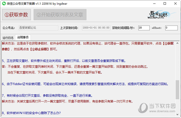 首先,软件将自动获取参数,直到出现“参数获取成功,可进行文章获取”。