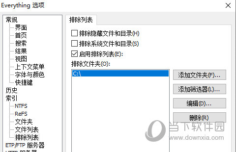 有时候搜索过程中会出现大量的QQ随机生成的文件以及C盘windows这个文件夹下的文件,这些结果大部分是没有用处的,我们需要把它排除。在选项里面找到排除列表-添加文件夹,把C盘下面windows这个文件夹添加进去就行了。