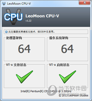 LeoMoon CPU-V是一款很简单的cpu虚拟化检测工具,它能够检测电脑的CPU是否支持虚拟化、是否已经开启虚拟化,软件使用很简单,打开软件就能看到相关信息。
