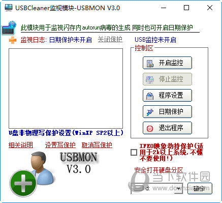 此模块用于监视闪存内autorun 病毒的生成,同时也可开启日期保护。U盘非物理写保护,是针对一些不具备写保护开关的U 盘设计的.