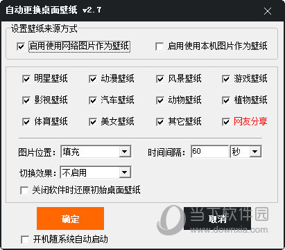 2. 网络模式可以自动从专业的壁纸网站下载精美壁纸(非广告图片),做为您的桌面壁纸,您只需选择您想要的壁纸分类,就可以完成自动下载,更换