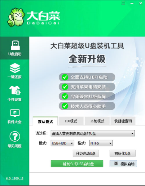 第二步:用大白菜U盘启动盘制作工具制作启动U盘