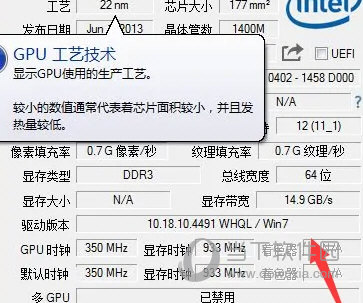 对于gpu-z给出的显卡的各项参数如果不懂也不要紧,我们可以将鼠标放在参数上,然后就会显示出说明,一目了然特别的方便。